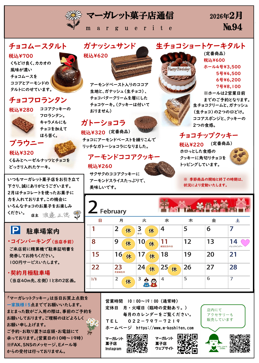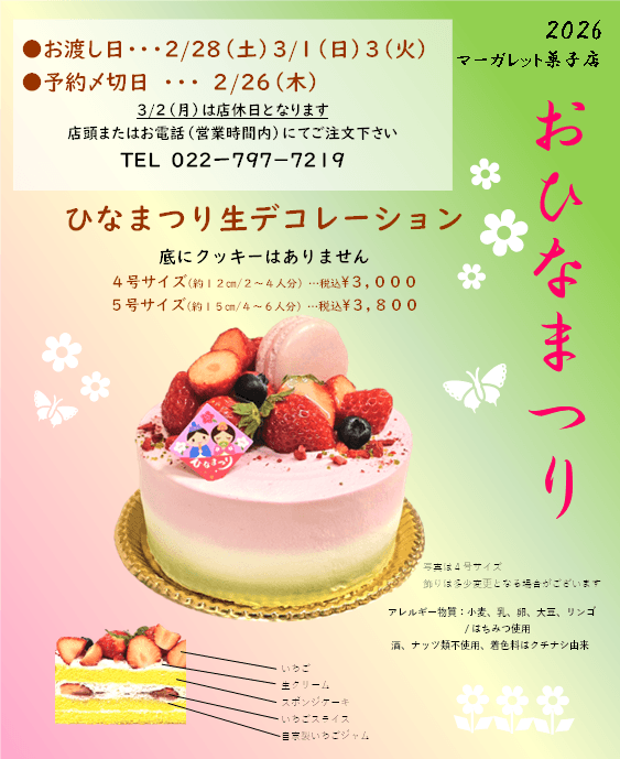 2月中旬~3月末までは焼菓子のご注文が集中いたします。(特に3月下旬)