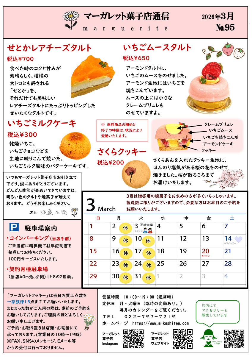 2月中旬~3月末までは焼菓子のご注文が集中いたします。(特に3月下旬)
