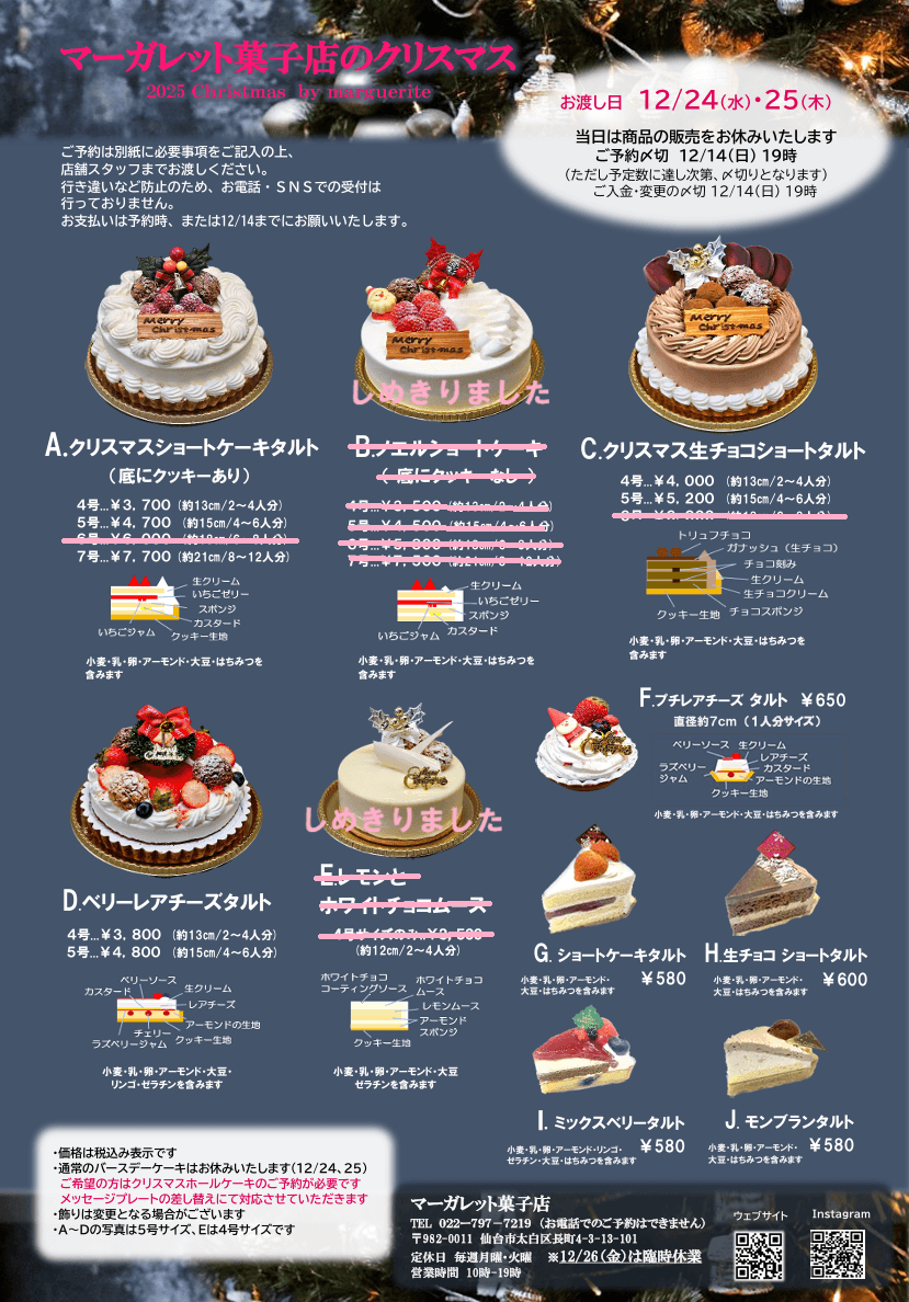 〇クリスマス期間は通常ホールタルトはお休みとなります。